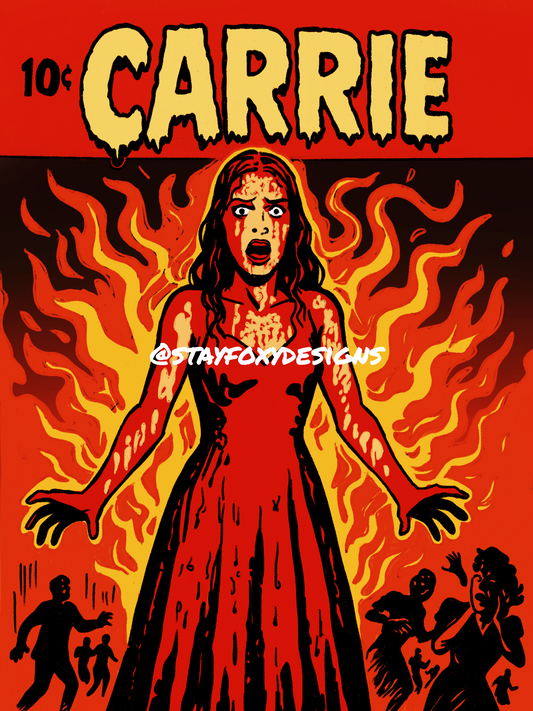 Carrie Comic Book Cover | Digital Horror Art Download | Vintage Pop Poster | Instant Wall Decor | Printable Horror | Stephen King Inspired