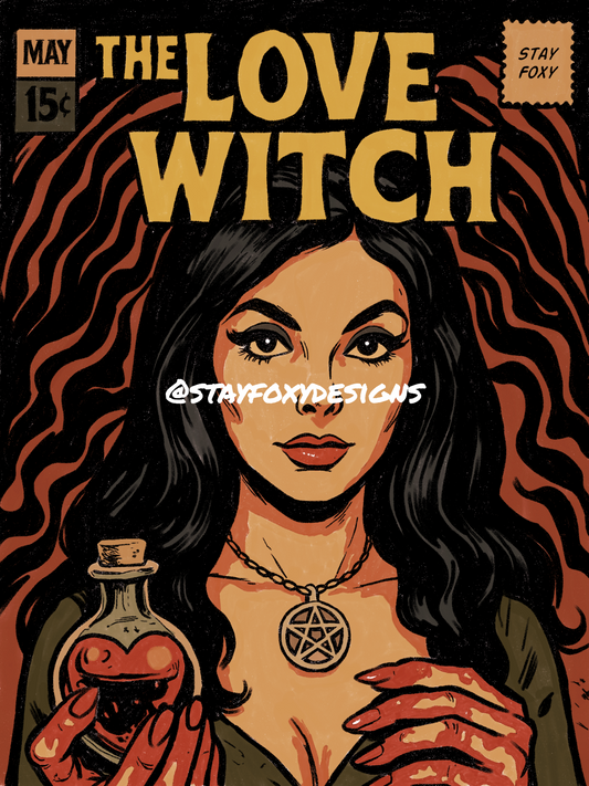 The Love Witch Digital Art Print | Retro Psychedelic Pop Art | Vintage Horror Romance Poster | Instant Download | Printable Wall Art