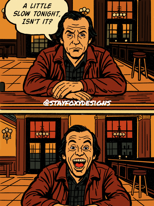 The Shining Comic Art Print – “Slow Night, Isn’t It?” | Jack Torrance at the Bar | Digital Download | Horror Movie Comic Panel Poster