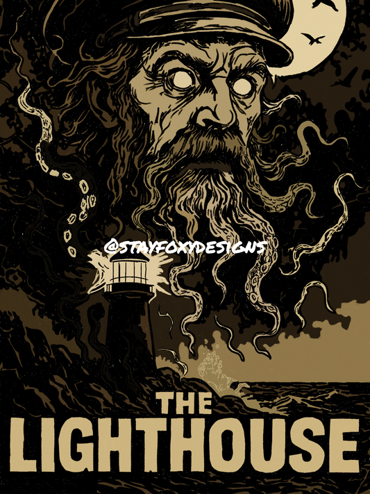 The Lighthouse Digital Art Print | Vintage Horror Comic Style | Moody Black & White Poster | Instant Download | Printable Wall Art
