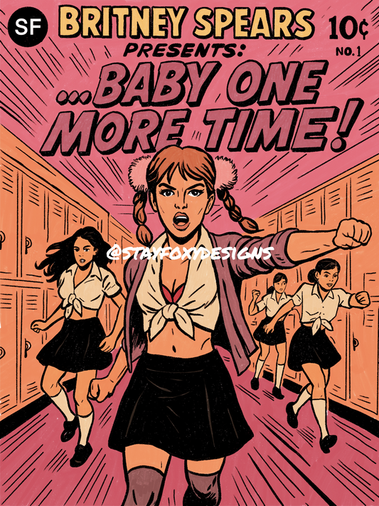 “…Baby One More Time” – Comic Book–Inspired Pop Art Print (Britney Spears Inspired)