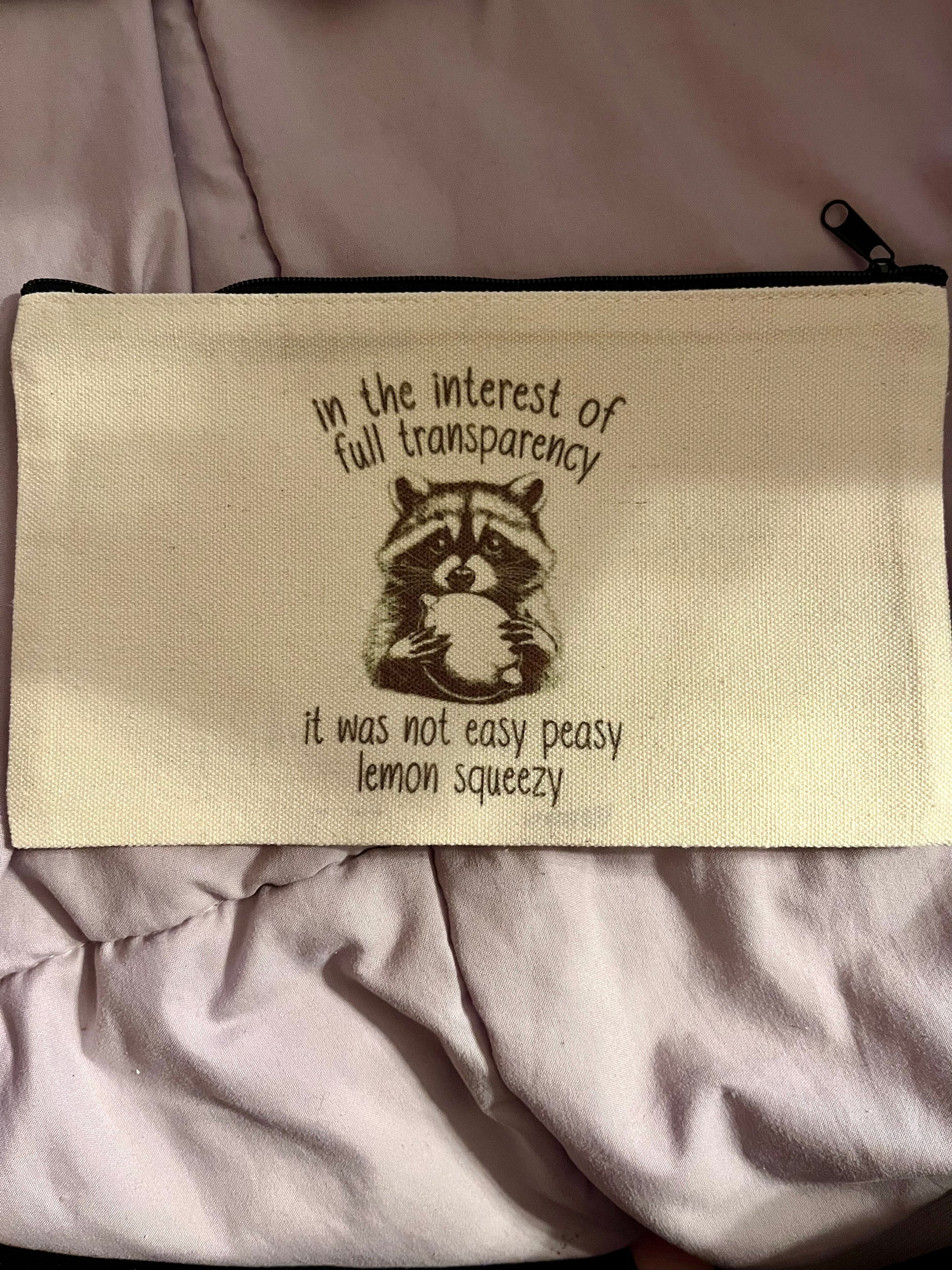 “In the Interest of Transparency…” Raccoon Lemon Zipper Pouch – Funny Cute Cosmetic Bag